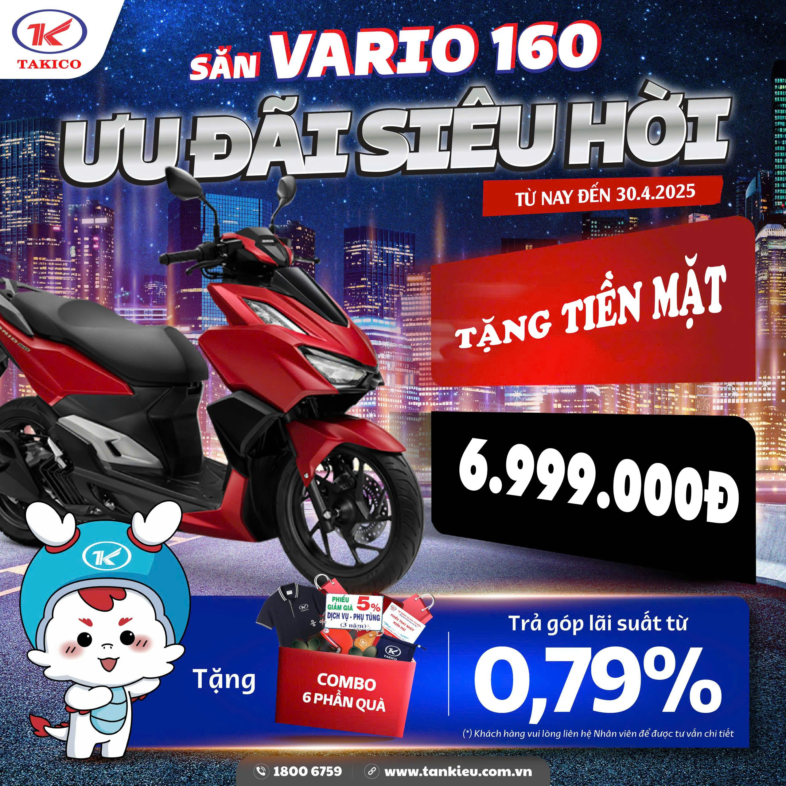 Ưu đãi hấp dẫn khi mua xe Vario 160 tại Hệ thống HEAD Tân Kiều từ nay đến hết ngày 30/4/2025: