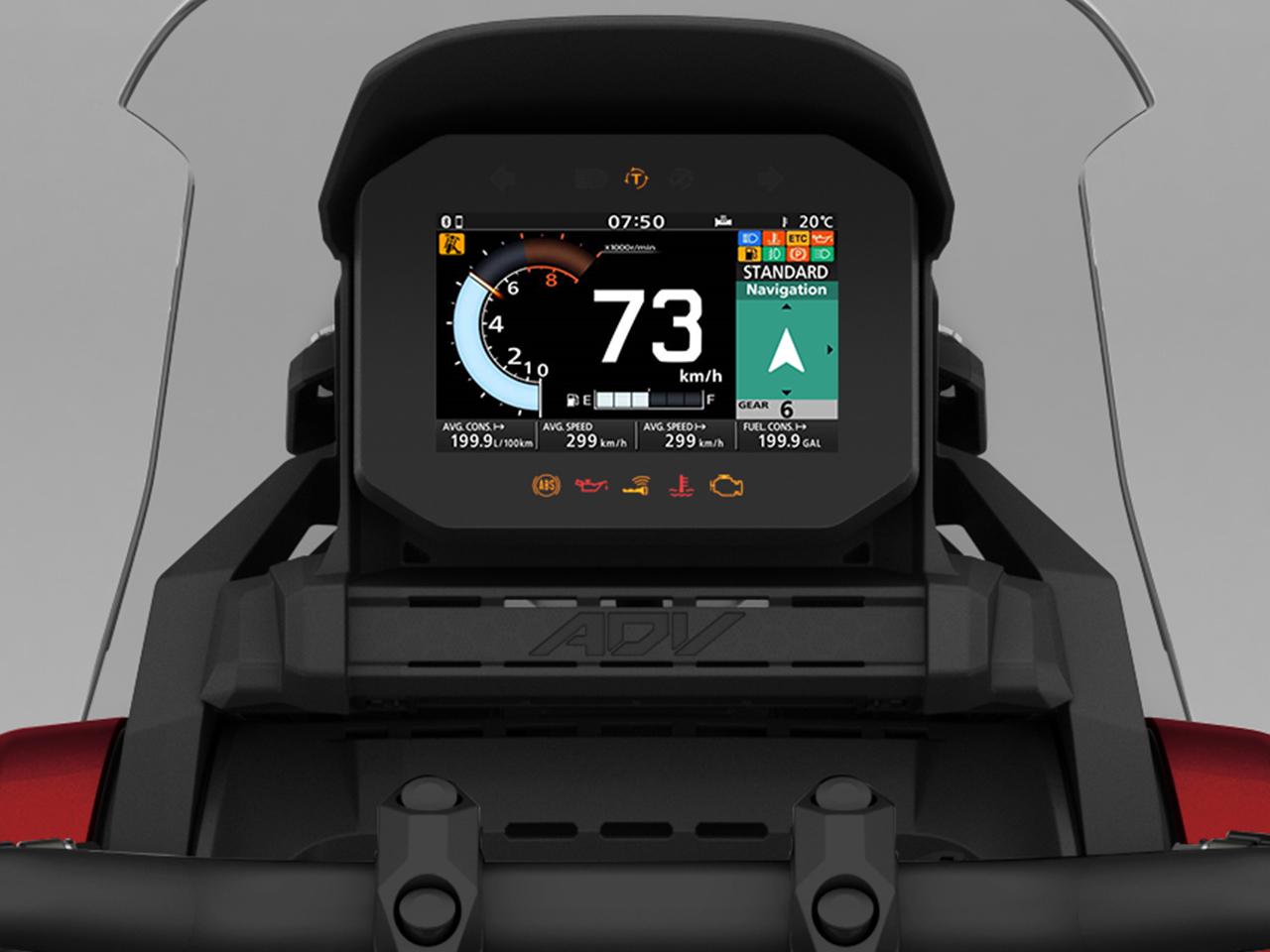 Màn hình TFT màu toàn phần 5 inch lần đầu tiên được giới thiệu trên xe máy Honda hiển thị đầy đủ các thông tin lái xe một cách rõ nét. Ngoài ra, màn hình còn kết nối trực tiếp với ứng dụng Honda Roadsync, cho phép thực hiện cuộc gọi, nhận thông báo và dẫn đường dễ dàng.